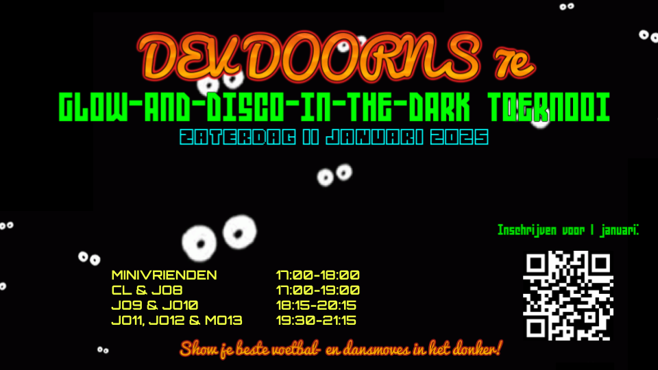 Gezien de huidige weersomstandigheden is het helaas niet verantwoord om het toernooi vandaag door te laten gaan. De velden zijn te glad en te gevaarlijk om op te voetballen doordat het opgevroren is. Daarom verplaatsen we het toernooi naar zaterdag 1 februari 2025 met iets aangepaste tijden: